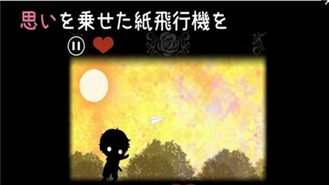 2.玩家将扮演一架寻找其它半的纸飞机,通过操作屏幕上的虚拟摇杆来控制纸飞机的飞行方向和速度,穿越各种风景如画的场景,最终找到并与另一架纸飞机重逢,共同完成一段爱情旅程。