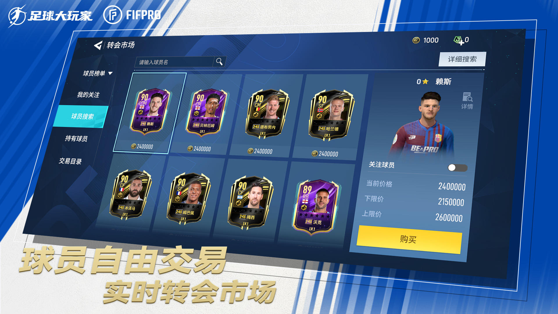 在足球大玩家里,玩家首先需要组建属于自己的梦幻球队。游戏提供了海量的真实球员供玩家选择,这些球员来自全球各大知名俱乐部,每个球员都有其独特的技能和属性。玩家可以根据自己的战术风格和比赛需求,精心挑选球员,打造一支实力强劲的队伍。进入比赛后,玩家将以教练和指挥官的身份,制定战术策略,指挥球员在球场上奔跑、传球、射门。游戏的操作并不复杂,玩家只需通过简单的手势和指令,就能控制球员的行动。游戏还支持实时对战,玩家可以与其他玩家在线切磋,比拼战术和实力。游戏中还有丰富的养成系统,玩家可以通过训练、升级等方式提升球员的能力,让球队不断成长和进步。