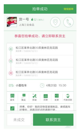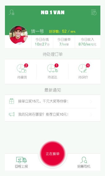 1.人性化设计:一号货车APP界面简洁明了,操作流程顺畅自然,即便是初次使用的用户也能快速上手。