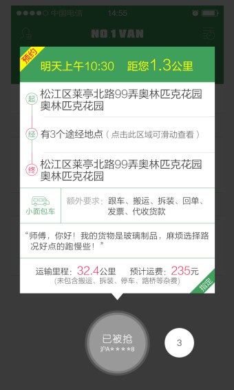 3.安全保障:APP提供运输保险服务,并有完善的司机审核机制,确保每一次运输的安全可靠。