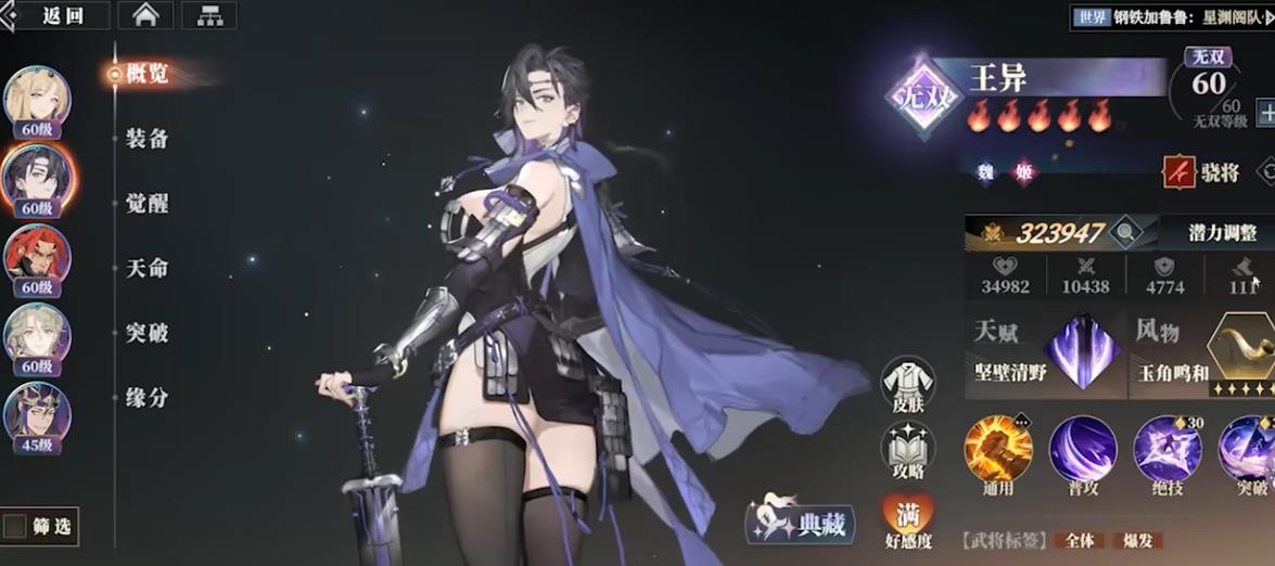 王异是五火专武五星,在开启典藏后上限应该会更高,是pvp最顶配阵容里的一员。能够以较高的胜率打败火烧队、极限吕布赵云蜀队...